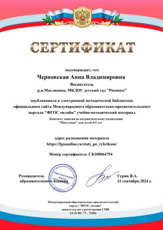 Воспитатель МКДОУ детского сада "Росинка" комбинированного вида