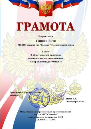 Воспитатель МКДОУ детского сада "Росинка" комбинированного вида