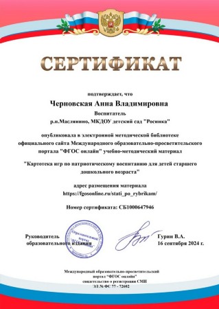 Воспитатель МКДОУ детского сада "Росинка" комбинированного вида